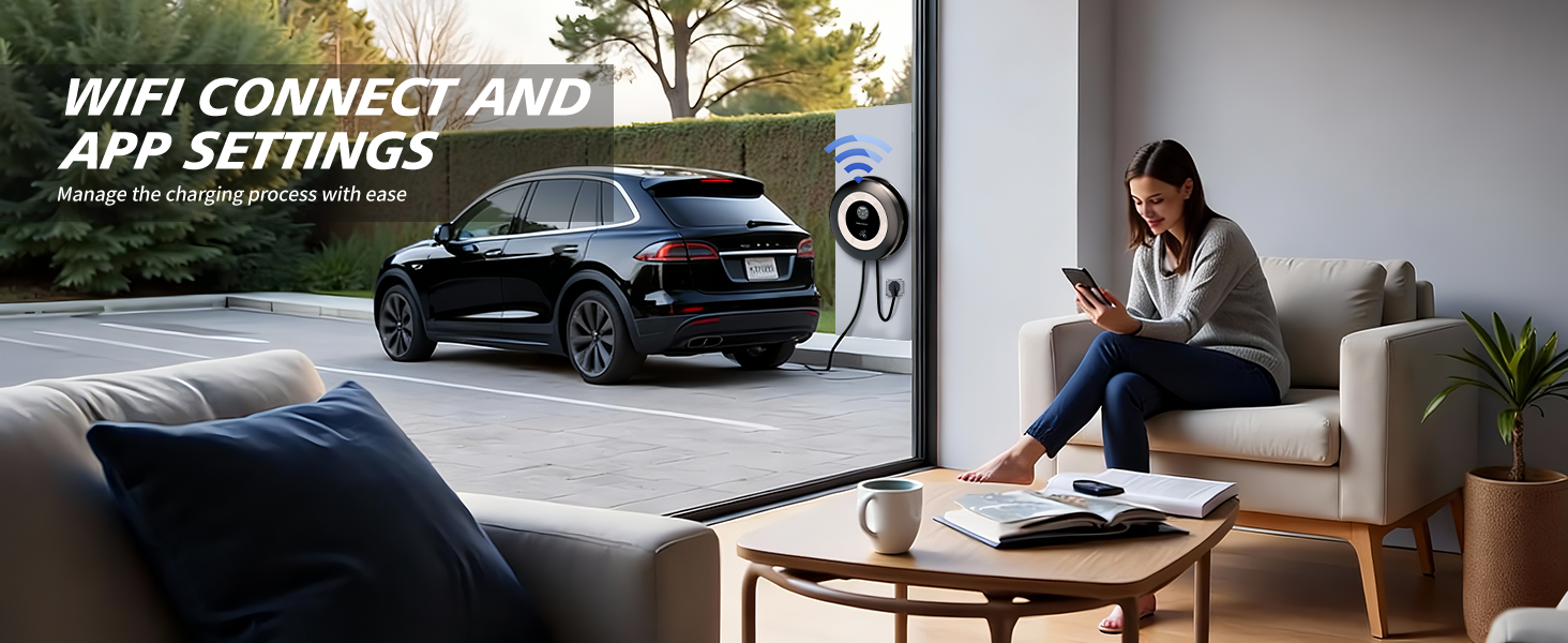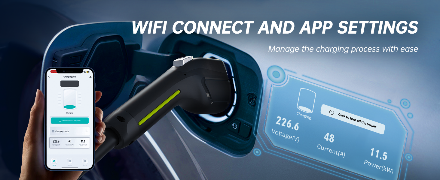 EV Charger Level 2 | 11.5kW Home Electric Vehicle Charging Station, 27.3ft Charging Cable with Smart App, 240V Wall EV Charger with NEMA 14-50,WiFi Enabled, EVSE J1172 Connector EC51